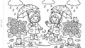 【無料塗り絵】梅雨のたのしい日|あじさい・子供・かたつむり・6月の季節イラスト|ぬりえプラネット