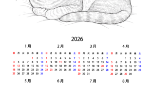 カレンダー 高齢者向けカレンダー塗り絵|2026年 リアルな猫と楽しむ季節(無料) 実用的なカレンダーとリアルな猫の塗り絵が合体。高齢者の方の生活リズムを整え、日付を意識する習慣(見当識の維持)をサポートします。毎月楽しく続けられる脳トレ素材として無料ダウンロード可能です。 カレンダー高齢者向けぬりえ