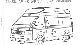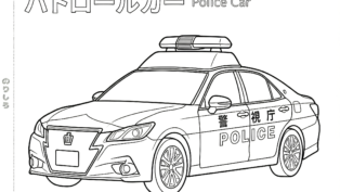 日本のパトロールカー(パトカー)の無料塗り絵です。お子様に人気の「働く車」シリーズ。カタカナの「パトロールカー」という文字付きで、塗り絵を楽しみながら文字の練習もできる知育素材です。