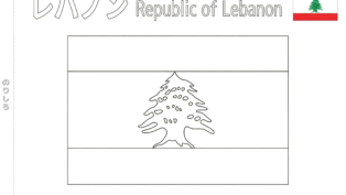 レバノン共和国の国旗の塗り絵(A4サイズ)を無料でダウンロード。お子様の知育や小学校の国際理解教育に最適です。カタカナと英語の名称付きで、文字の練習も同時に行えます。