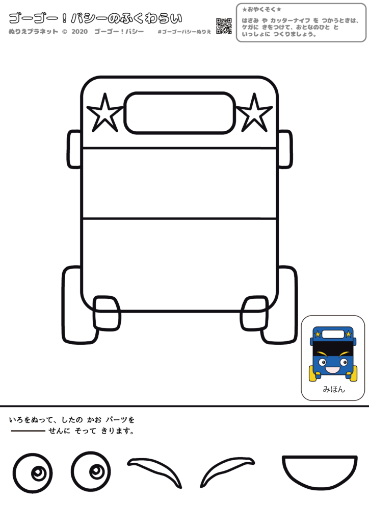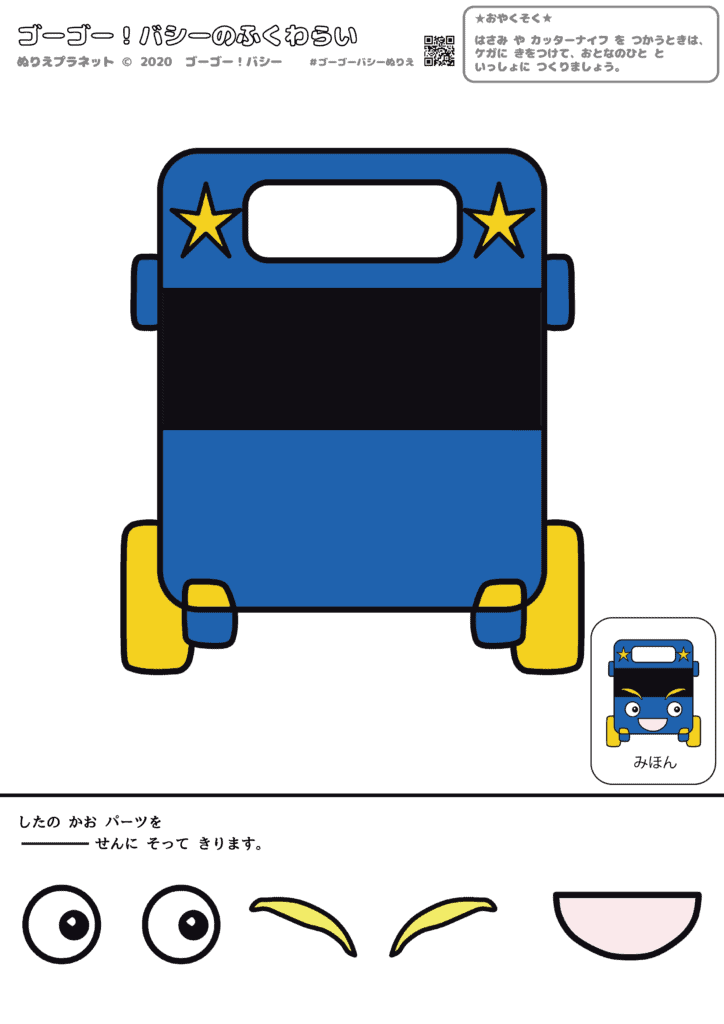 お正月はみんなで福笑い!ゴーゴー!バシーのバスのバシーのふくわらい。アイキャッチ用画像です。