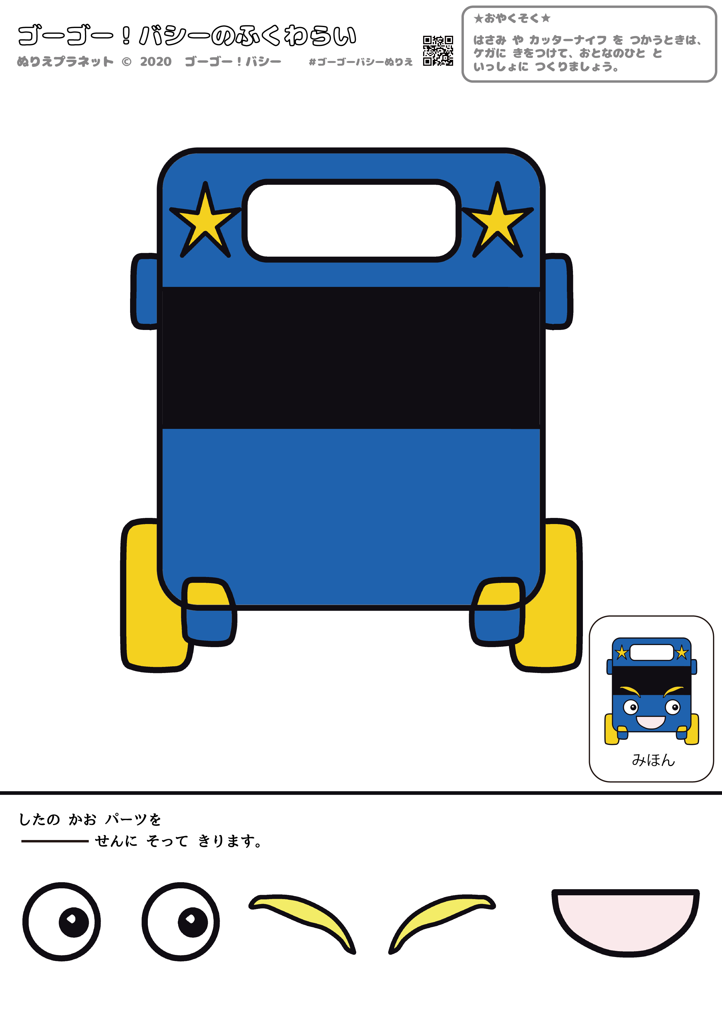 お正月はみんなで福笑い!ゴーゴー!バシーのバスのバシーのふくわらい。アイキャッチ用画像です。